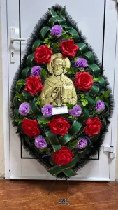Ритуальный венок размером 110 × 60 см символизирует уважение и память. Выполнен с искусственными цветами, подходящими для траурных церемоний. Возможны наличная и безналичная оплата, оплата картой и почтовым переводом. При заказе ритуальных услуг вы получаете скидочную карту на памятник.
