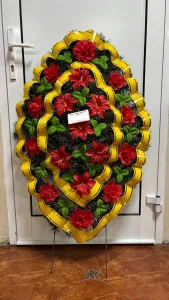 Венок ритуальный выполнен с соблюдением классических традиций траурных композиций. Размеры изделия: 110 × 60 см. Венок украшен искусственными цветами, символизирующими память и уважение, и подойдет для церемонии прощания. Можно приобрести с наличной или безналичной оплатой, также доступна оплата картой.